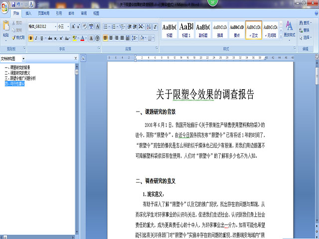 调研报告由课题研究背景、调查研究意义、限塑令推广问题分析以及可行性建议四个板块组成。报告针对塑料购物袋的使用情况进行了详尽的分析,并在最后给出了可行性的建议。团队成员希望通过撰写调研报告的形式,进一步深入了解“限塑令”以及它的推广现状,找出存在的问题与弊端,从而深化学生对环保事业的认识与关注,促进我们走近社会,认识到我们身上社会责任的重大,成为更具责任心的人,为环保事业出一分力。如有可能也希望能引起有关环保部门对“限塑令”实施中存在的问题的重视,改善瑞安地域内“限塑令”的推行。