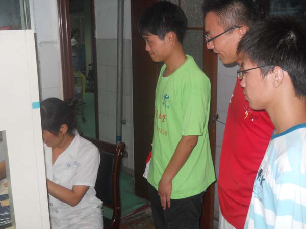 上午十点左右,天空中下起了瓢泼大雨,但是恶劣的天气丝毫没有阻挡实践团的脚步。到达医院后,张集煤矿医院李院长热情的欢迎了实践团的到来,他说,张集煤矿医院也有三十多年的历史了,虽然看起来很简陋,但是医院的设备都是最新的设备,完全能够满足煤矿以及附近村庄就诊的需要。随后他又做起了实践团的导游,带领队员们参观了医院的一些科室,李院长热心的给队员们介绍张集煤矿医院的相关情况,与此同时,医院的医生和护士还和队员们亲切交谈着,包煤矿常见