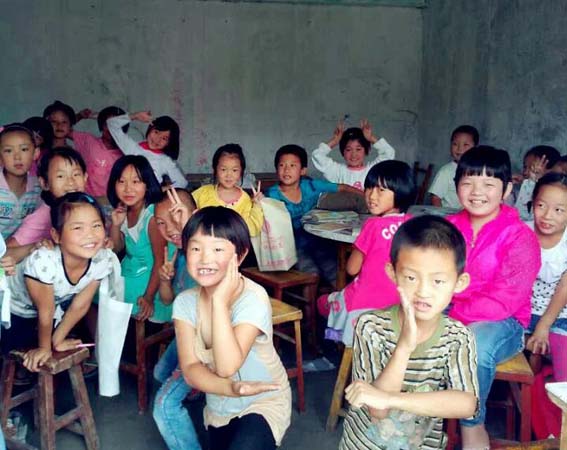 上午十时,校长带领志愿者们来到了教室。校长给孩子们介绍了志愿者们,孩子们对志愿者们的到来报以热烈的掌声,这是孩子们与志愿者们的第一次见面。志愿者们和孩子们互相做了自我介绍,气氛活跃。志愿者们分队还带着早就买好的礼物,包括整套文具、各类书籍、几种玩具,还有一些牛奶和食物。志愿者们对这些礼物进行了合理分配,对那些特别贫困的孩子们,志愿者们给予了最厚重的礼物。孩子们对这些礼物也非常喜欢,满脸洋溢着兴奋之情。志愿者们又和他们一起做了他们喜欢的游戏,问了很多他们的家庭情况,他们也慢慢的摆脱了羞涩,跟志愿者们讲了一些他们的事情,渐渐地志愿者们和学生们打成了一片。