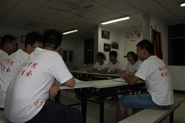 晚7点,会议正式开始,队长杜杨率先做出了总结陈词:他首先向团对的所有队员们表达了深深的感谢之情,感谢队员们冒着热暑,用自己的坚持和毅力克服了活动中遇到的种种困难,最终圆满的完成了此次实践。接着他简单的陈述了此次社会实践活动中实践团队所取得的成绩,最后他说:“虽然我们的实践活动到这里就结束了,但是我希望大家在以后的生活中都不要忘记我们的初衷,要时刻牢记为实现中国梦而努力!”随后,队员一一就自身在此次实践活动中的所学所感做简单陈述,副队长谷斌洲表示,通过此次社会实践他明白了读书的重要性,他会好好珍惜自身的学习机会和天美传媒