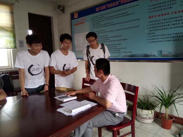 2014年7月21日下午,为了了解长年累月在矿区工作的矿工的一些现状。下午二点半,“心系老矿,关爱矿工“暑期社会实践团来到了三河涧矿区第二分队会议室准备对矿工魏晓国进行采访。