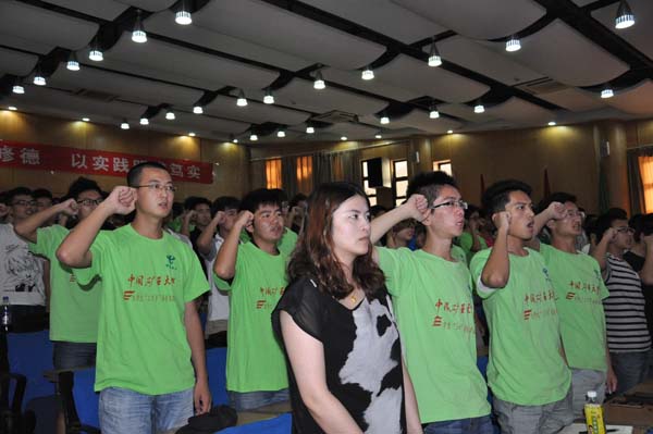 2014年大学生暑期“三下乡”社会实践出征仪式在镜湖大讲堂举行。天美传媒