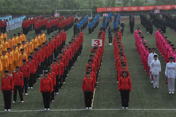 入场之后,接下来举行的是庄严的升国旗仪式,军乐队奏响国歌,全场起立,面向国旗行注目礼,仪式过后,紧接着举行的是太极拳比赛,在比赛当中,参加比赛的同学们身着统一的服装,拳法动作行云流水,整齐划一,赛前训练的辛苦在今天得到了回报,在全场沸腾的掌声当中,本次运动会开幕式顺利落下帷幕。