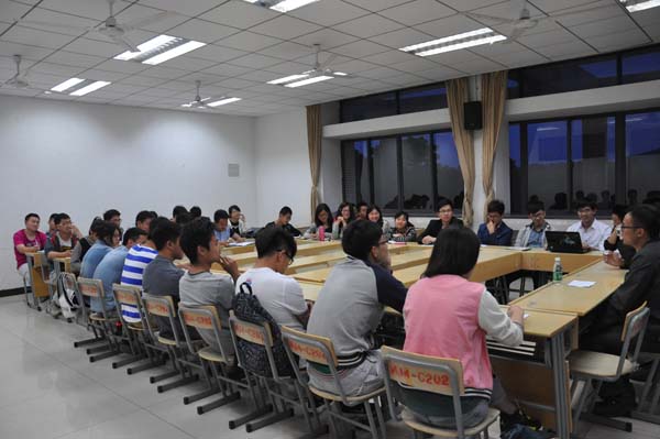 晚上7:00,在李元元对负责此次分享会主讲的两位学长及会议目的的介绍后,分享会正式开始。首先,何选泽就学生工作,学习,分配时间三个方面详细地谈了自己的想法,并通过自身的例子给了学弟学妹们很多建议。他强调,对于学生工作,责任感和创新精神很重要;学习永远是第一位的;应珍惜时间,合理分配时间,多做一些有意义的事。然后是提问交流环节,在此环节中,很多同学都问到了关于找工作和考研保研的问题,两位学长与大家积极互动,耐心地回答了大家所有的问题,路世永通过自身数次面试的经历,给大家分享了很多面试中可能遇到的问题以及他所总结的面试技巧,现场气氛一派融洽。最后,李元元对此次分享会进行了总结,在大家热烈的掌声中,分享会于晚上8:00正式结束。