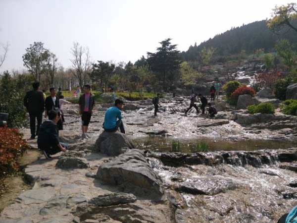 在珠山风景区里除了下沉式走廊给游客留下很好的印象外,另一个吸引人的景点就是人工瀑布了,这个人工瀑布是目前淮海经济区最大的人工瀑布,因其因山而建气势很大。大家在清澈的瀑布旁嬉戏打闹,路途的疲惫也得到了稀释。