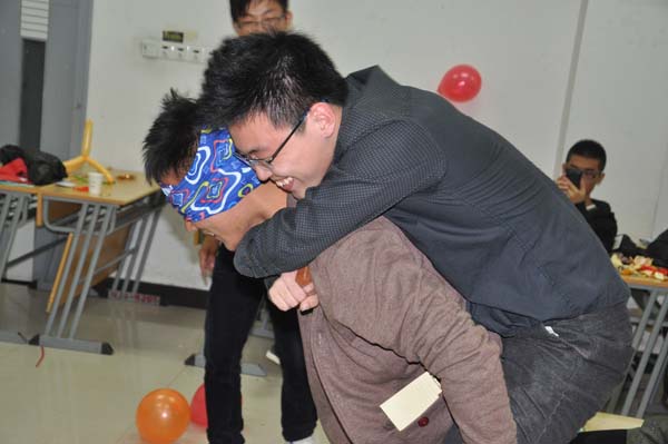 接下来的游戏“背基友,踩气球”和李广威同学的歌曲《趁早》也将班会推向一个又一个高潮。最后一个环节,是贺小猛同学为我们带来的歌曲《朋友》,一个人的演唱渐渐变成全班同学的合唱,此时此刻,所有的语言都融化在歌词中,所有的感情都倾注在歌声中,不知不觉,活动已进行了两个小时,大家只能期盼着来年的再次相聚!
