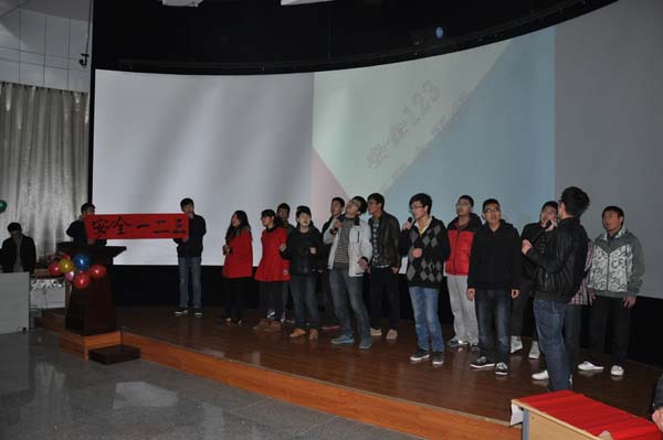 下午2:10,在主持人简介有力的开场白以及对到场评委的介绍以后,比赛正式开始。比赛共分为两轮,第一轮班级风采展示,占最后成绩的30%,第二轮欢乐合唱团占最后成绩的70%,各参赛班级按赛前抽签结果依次进行比赛。班级风采展示环节中,大多数班级都以视频的方式来介绍班级,那些幽默风趣,制作精美的视频博得了同学们阵阵掌声和喝彩声;还有的班级用PPT展示,每一张幻灯片背后都记载着班级生活的点点滴滴。更有压轴出场的安全12―4班以其神秘的魔术表演,将全场气氛带到高潮。尽管方式多样,但所有的班级风采展示都体现了班里同学间浓浓的爱,在这个寒冷的冬日里,带给了所有观众一份温暖。欢乐合唱团环节中,和着每个参赛班级独具特色的歌声,还有参赛班级们为大家精心准备的才艺表演,安全13―4班的情景剧,安全12―2班的民族舞,安全12―3班的现场书法展示都带给观众们一场场精彩的视听盛宴。综合两轮比赛得分,安全12―1班,安全12―3班和安全13―2班得分分列前三。最后,在辅导员老师和学生会副主席的精彩点评后,比赛于4:50正式结束。