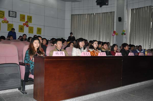 辅导员老师孙婷、刘静、蔡维维、杨洋,学生会副主席田策宇、李元元、林博,大一大二所有班级参加了此次比赛,此次比赛由耿新泽主持.