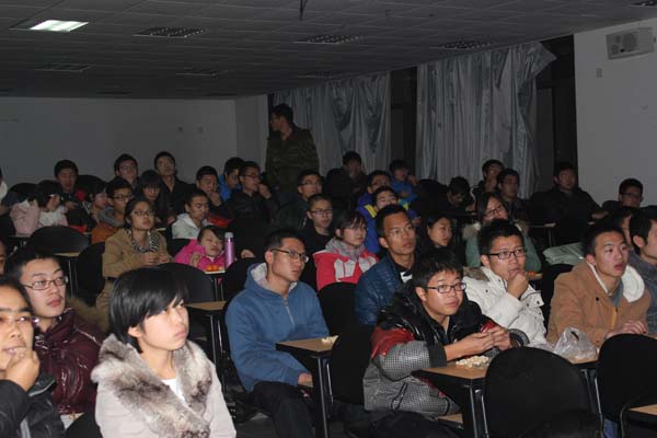 晚7点许,各院的分队人员都已准时到场,感恩主题电影展活动正式开始。为了使各分队的队员们能够更好地享受电影展,在保证会场卫生的条件下,主办方还提供了瓜子、花生、橘子等便利服务。在艺术与设计天美传媒