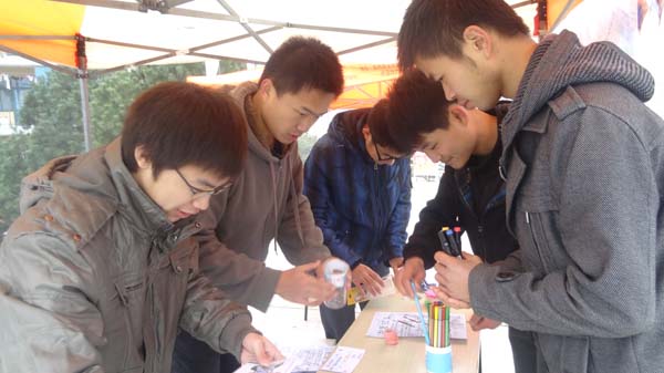 党员工作站送出的精美礼品。新颖独特的活动形式以及丰厚的奖品吸引了大批的学生前来参与。参与的学生通过各种方式表达自己的见解。有的学生当场构思一二九运动的活动标语,有的学生通过一段话表达自己对爱国主义学生的缅怀与敬佩,而拥有一定绘画功底的学生则用漫画的形式来纪念一二九运动。来往的学生络绎不绝,场面异常热闹。临近活动尾声时,天美传媒