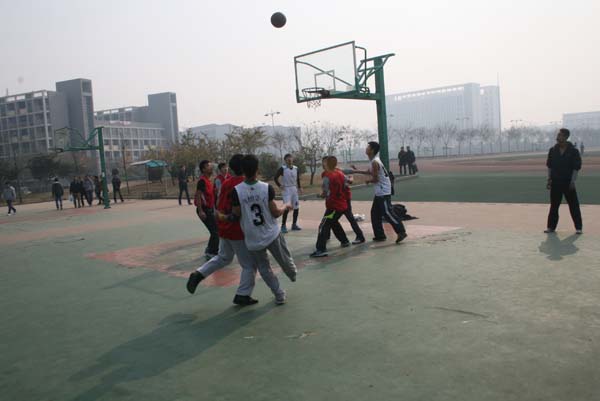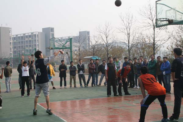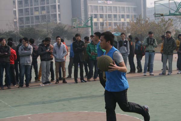 本场比赛共占用四个篮球场地,大二到大四三个年级均有球队参赛,他们分别是:安全10-4班VS消防11-1班、安全12-1班VS安全10-2班、安全10-3班VS消防11-2班、安全11-3班VS安全11-1班。比赛于13:27分正式开始。伴随着裁判员哨声的吹响,各篮球场上的参赛球队一支接一支地投入了比赛,因为每支球队都是经过上一轮小组赛晋级而来的实力派队伍,所以各场上双方球队你追我赶、毫不示弱,丝毫不放过任何抢球、投球的机会,比赛竞争颇为激烈,也正因为每支球队、每个球员的忘我投入,使得在各篮球场上不断上演一幕又一幕的精彩瞬间,场上运动员奋力拼搏、挥汗如雨,场外观众兴奋不已、呐喊助威,比赛在饱含运动员与观众的澎湃热情中进行下去……
