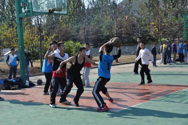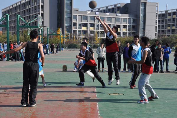 13-1班和11-1班的对抗率先开场,紧张的气氛立即充满了整个球场。13-1班的篮球队员们在控球后卫贺宏辉的带领下,有组织的进攻和防守,他们行云流水般的动作和默契十足的配合打出了新生队的风采。最终34:27的比分打败11-1班。而邻场12-3班与11-3班的战事也是精彩纷呈。相比于12-3班,11-3班的队员们表现的更加突出,尤其李钊的带球、运球、抢断、投篮等一系列动作潇洒有力,最终以45:28的优势战胜了12-3班。13-4班的新生球员们面对众多前辈,也丝毫没有畏惧,奋勇出击。号称“得分王”的胡涛,他以精湛的球技,连连的进球引得场外此起彼伏的欢呼声和喝彩声。而与之对阵的12-2班的方立、裴永恒也不甘示弱,积极应对、迅速进攻,但最终仍以31:35的微弱差距惜败13-4班。另外一场比赛中,11-4班也表现不凡,但仍以19:30的比分落败于11-2班。