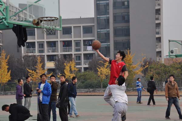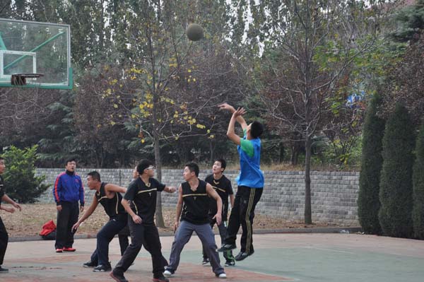 比赛刚刚开始,有的班级便向对手发起了猛烈地进攻,而有的班级则实施稳扎稳打的策略。显然,经过了两天的逐鹿后,每个班级都规划出了自己的比赛战略。西边赛场上双方打得十分凶猛,难分伯仲,但几分钟过后,安全12-1班的领先优势便逐渐明显,安全12-1班的1号王鑫与10号石拿尔配合默契十足,王鑫凭借良好的弹跳能力在篮筐下频频得手,接着一个漂亮的转身将球奋力一抛,准确无误的将球掷入石拿尔手中,石拿尔迅速运球上篮,安全12-1班连砍6分,安全11-2班难望项背,分差逐渐拉大。第四场比赛过后,安全12-1班毫无悬念的以43:28打败对手。在比赛的过程中,中间球场上不时传来阵阵欢呼,精彩程度显而易见。安全10-4班的五名球员动如脱兔,作战方略多变,使得安全13-4班数次失球,在如此不利的情况下,13-4班仍然一次次的发动快攻,希望可以突破对方严密的防线,场上局势愈演愈烈,赛场持续升温,最后安全10-4班以46:27的巨大优势取得胜利。东边的赛况异常扣人心弦,在离比赛只有5分钟的时候,安全13-1班付嘉石一记出人意料的跳投为本班创造了峰回路转的机会,安全10-3班也毫不松懈,加强了防备,最终比分定格在24:33,安全13-1班并未改变落后局面,惜败安全10-3班。