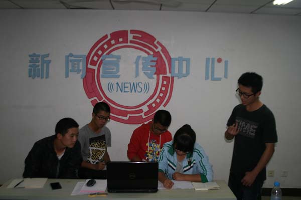 新闻宣传中心于10月7日晚上七点在梅三一楼活动室开展第一次新闻培训工作。记者站站长袁野,宣传部部长钱鑫和副部长李欣,编辑部部长曹蒙钰和副部长陶冰冰给13级新成员进行了培训工作。