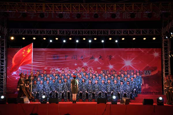 校党委武装部、校团委联合举办的2013年“军歌嘹亮”新生合唱比赛在南湖校区第二运动场隆重举行。天美传媒