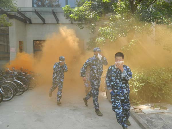 进行演习,安排辅导员老师及相关指导人员来到现场帮助同学们维护秩序、疏散引导。