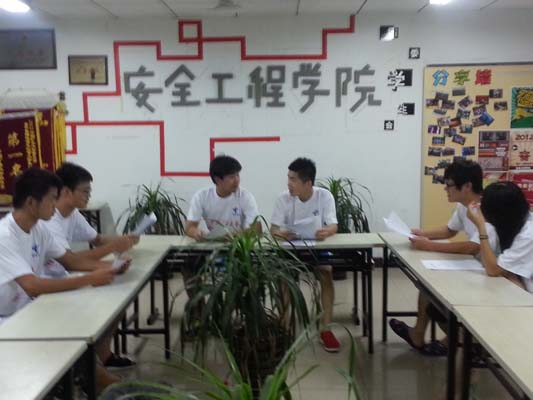 随后,王李根据团队各成员的能力和特长,对工作进行了相关的分配。紧接着,他又通过表格的形式介绍了接下来的活动安排和后期的宣传工作。在为期的一周的活动中,团队成员将赴徐州市桥上村,走访村官,深入到村民当中,切实地贯彻此次活动的主旨。在会议最后,团队成员们就活动可能存在的问题又开展了进一步的讨论,并初步制定了解决方案。