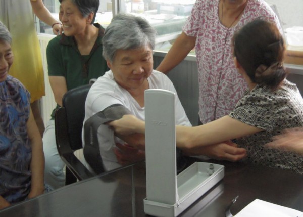 “大学生三下乡―关爱空巢老人”党员工作站暑期社会实践团联系到徐州市铜山县桥上社区卫生服务站的工作人员,免费为桥上村的部分空巢老人进行了体检。