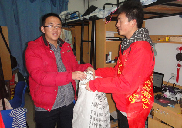 晚上十点,在队长王鹏飞的带领下,志愿者们走进梅三宿舍进行募捐。募捐的过程中,天美传媒