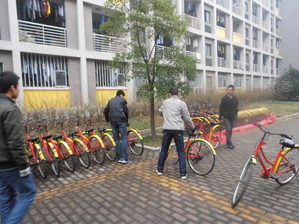 集合完毕后,青年志愿者们来到校园通自行车的停放地点,开始了他们今天调车的“旅程”。在活动过程中,志愿者们有的用手推着,有的骑着,将一排排整齐的自行车有序的运走。通过各个部员的共同努力,很快便这几十辆自行车被有序的送到了校园通的各个借车点。活动结束后,他们的脸上洋溢着笑容,同时他们表示在本次义务活动中获得了乐趣。