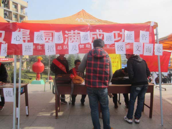 学生服务分队特参与举办爱心班级招募及征文比赛。2012年11月24日中午,活动在二食堂广场正式开始。