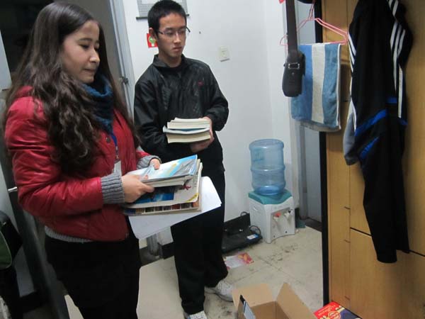 大四同学的宿舍进行图书收集工作,并为他们整理阳台,代卖废弃塑料瓶。