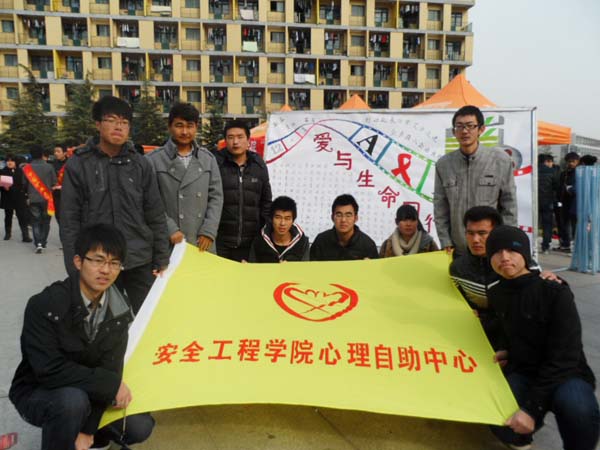 心理自助中心精心准备了三个小活动。第一是做红丝带。学生们在红丝带上写下自己的名字和祝福,并把它们贴在展板上。第二个环节是有奖问答,学生们可以随机地抽取活动人员精心准备好的问题并判断,答对者将会获得相应的奖品。整个活动中,学生们十分踊跃,气氛异常融洽。第三环节是把爱心留在便签纸上。学生可以在便签上写下一句话表达自己的愿望以传递和展现自己的爱心。
