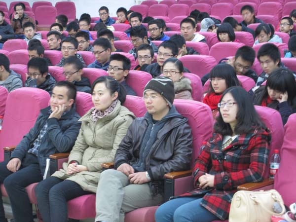 在各位明星同学作完报告后,李成刚老师做了学风建设月的动员演讲。他的演讲从学风建设的重要性出发,论据翔实,举例生动。让大家明白了为什么要建设学风。最后,由学习部部长李元元同学对学风建设月的工作做具体的介绍。