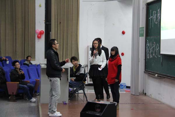 生活部部长向大家介绍详细介绍独具特色的宿舍文化节。他用幻灯片向大家展示了上一届宿舍文化节的优秀作品,同学们看到这些漂亮且富有想象力的宿舍布置,纷纷鼓掌称好。随后,他向大家展示了上一届宿舍文化节之才艺展示阶段的优秀节目,这些节目不但生动搞笑,同时展现了舍友之间的深厚友谊,颇为感人。