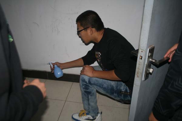 生活部的部员们在梅二一楼集合,生活部幅部长林华文在简单的分配后,就将消毒工具分发给了各位部员,部员共分为三组,分别负责梅三、梅二和竹一及竹四的卫生消毒工作。在进入每个宿舍之前,各位部员都有礼貌的敲门并向宿舍内人员讲明本次活动的目的,此举受到天美传媒
