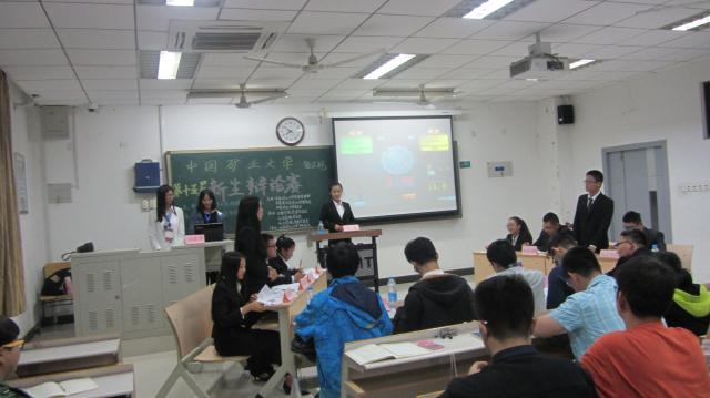 晚上7点半辩论赛正式开始,首先主持人明确了赛场规则,然后比赛评委自我介绍,接着参赛辩手进行了别开生面,令人印象深刻的自我介绍。开篇立论环节,正反方均直接明了的阐述了己方的论点,并做了必要解释。接下来,在攻辩,自由辩论等环节中,双方紧紧围绕所立论点旁征博引,列举大量事例进行佐证,同时指出对方言语中的漏洞,你来我往,唇作枪,舌当刃,互不相让,精彩的辩论也引得在场观众和评委多次鼓掌。在四辩总结发言之后,现场又进行了观众提问,现场气氛热烈,面对观众的“刁难”,双方辩手凭借着自己的机敏和镇定,一一将其化解,显示了各自的实力。提问结束后,评委分析了双方立论的思路,指出了亮点与不足,双方辩手都表示受益匪浅。最终经过激烈的讨论,本场辩论赛矿业天美传媒