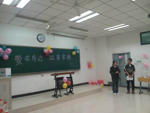 各班积极响应,主动参与到本次活动中。活动期间,各班相继举行“爱在身边温馨家园”主题班会。班会上,各班同学通过歌曲、小品、游戏等多种方式活跃班会气氛,个人表演环节、团体协作环节、集体共建环节缤纷有致,令班级同学在展现自我的同时加深对班级同学的了解,提升对班级集体的概念。12级新生在本次班会中对本班同学有了更深的认识,从而为班级日后的建设奠定了基础。各班同学互相沟通交流,共谈班级建设心,共话四年同窗情。