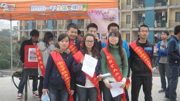 青年志愿者协会共同举办的以“爱心温暖受伤的心灵”为主题的爱心募捐活动在矿大二食堂广场顺利开展。