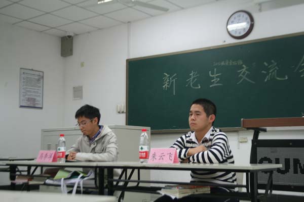 团委学生会学习部举办的新老生交流会在教四C401至教四C405召开。徐超航、施心意、路世远、朱云飞、等学长学姐作为优秀老生代表与12级同学围绕同学们在入学近两个月内遇到的问题及心中的困惑进行了交流。