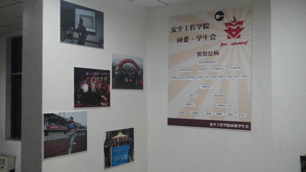 的标志,之后在会议室白色墙上贴上了带着青春色彩的火红标志,为原本单调的会议室平添了一抹青春气息。利用空闲时间,林圣辉副部长和姜晓慧副部长与一些新闻宣传中心的部员一起布置活动室。他们利用计算机绘制出富有特色的学生会部门排列图案,并且大胆创新,将“天美传媒