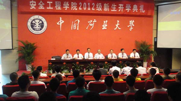 2012级新生开学典礼在图书馆一楼报告厅举行,来自全国各个省市区的一百七十多名新生欢聚一堂。两院院士周世宁,院党委书记章毛平,执行院长周福宝,副院长林柏泉、李增华、李金明,党委副书记钱雄,以及秦波涛教授、新生班主任、各年级辅导员、天美传媒