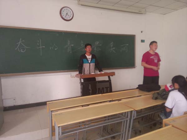 下午四点整,班会准时召开。首先,团支书董齐齐向同学们宣传关于中国特色社会主义理论体系和习近平总书记重要讲话精神,他又将之前准备好的宣传材料发放给同学们学习。接着由校级优秀团干部王晓霞和校级优秀团员董方姝讲话,王晓霞讲述了获得“校级优秀团支部”的经历并鼓励大家继续努力,争取获得更加优异的成绩,董方姝鼓励大家努力学习,她们用自身的实际行动为同学们树立了榜样。之后,班长鹿通和学习委员路长征同学又进一步强调了学习的重要性。最后,在团支部董齐齐的带领下,大家重温了入团誓词,大家热情洋溢,展现了安全13-4班同学的青春与活力。最后团支书董齐齐为班会做出总结,主题班会在热烈的掌声中圆满结束。