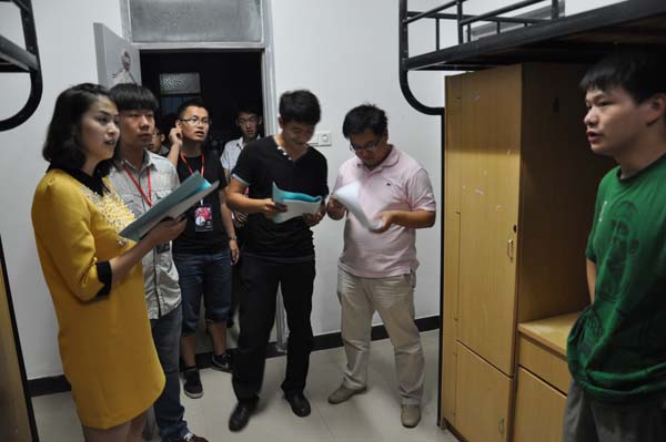 学生会主席团成员对学生宿舍展开了细致的检查。