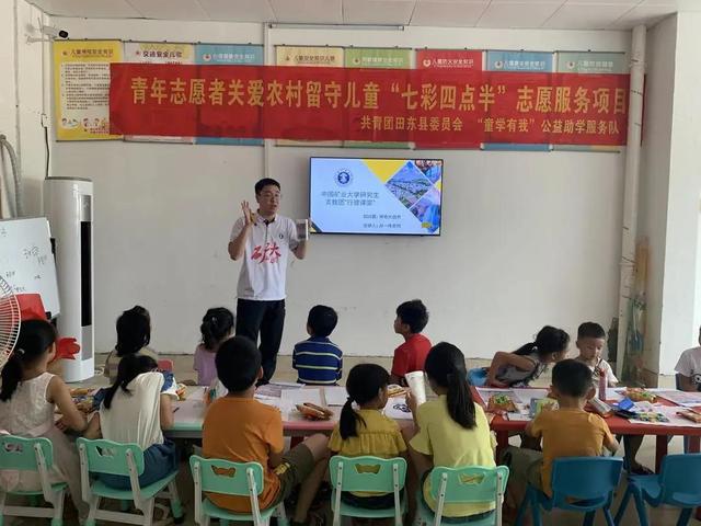孙一伟的支教所在地是享有盛名的中国芒乡——广西田东。教学工作之余,他与研支团的伙伴共同组织了“半块月饼的温暖中秋”“七彩四点半”等公益服务活动。