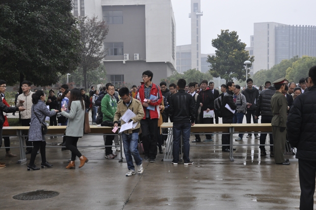 的毕业生满怀自信与期待,早早的来到现场排队等候入场。招聘会现场天美传媒