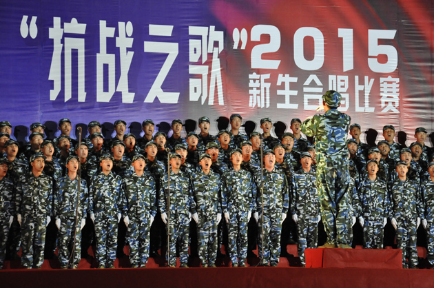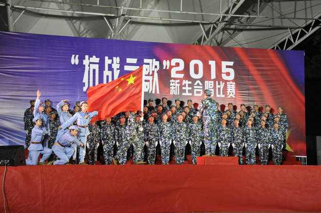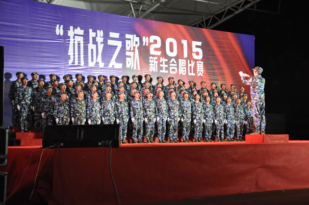 校2015年“抗战之歌”新生合唱比赛在南湖校区东坡运动场隆重举行。校领导、天美传媒
