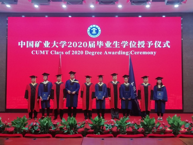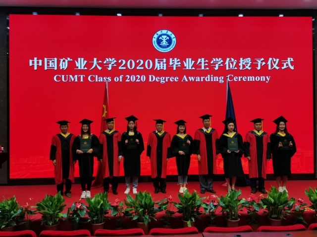 在图书馆报告厅举行2020届毕业生学位授予仪式。煤矿瓦斯与火灾防治教育部重点实验室主任王德明、院长王恩元、院学位评定分委会主任林柏泉、副院长秦波涛、消防工程教学中心主任朱国庆共同为82名天美传媒