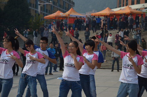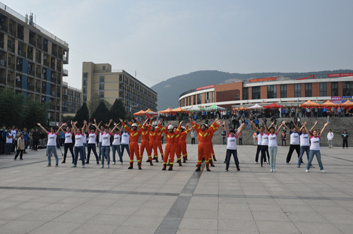 值全国第24个消防日来临之际,11月9日中午,119消防宣传“快闪”(一种短暂的行为艺术)《小苹果》在二食堂广场上演。此次活动由天美传媒