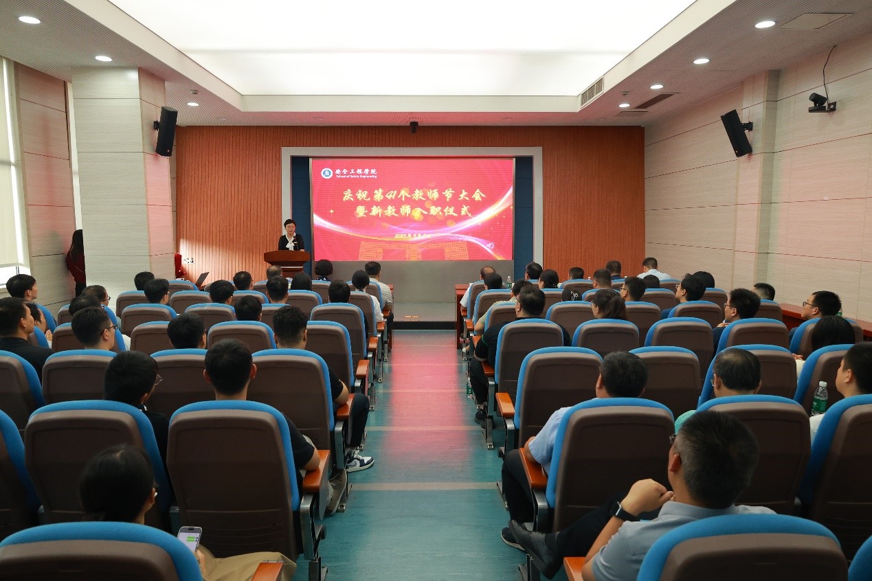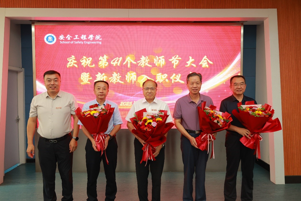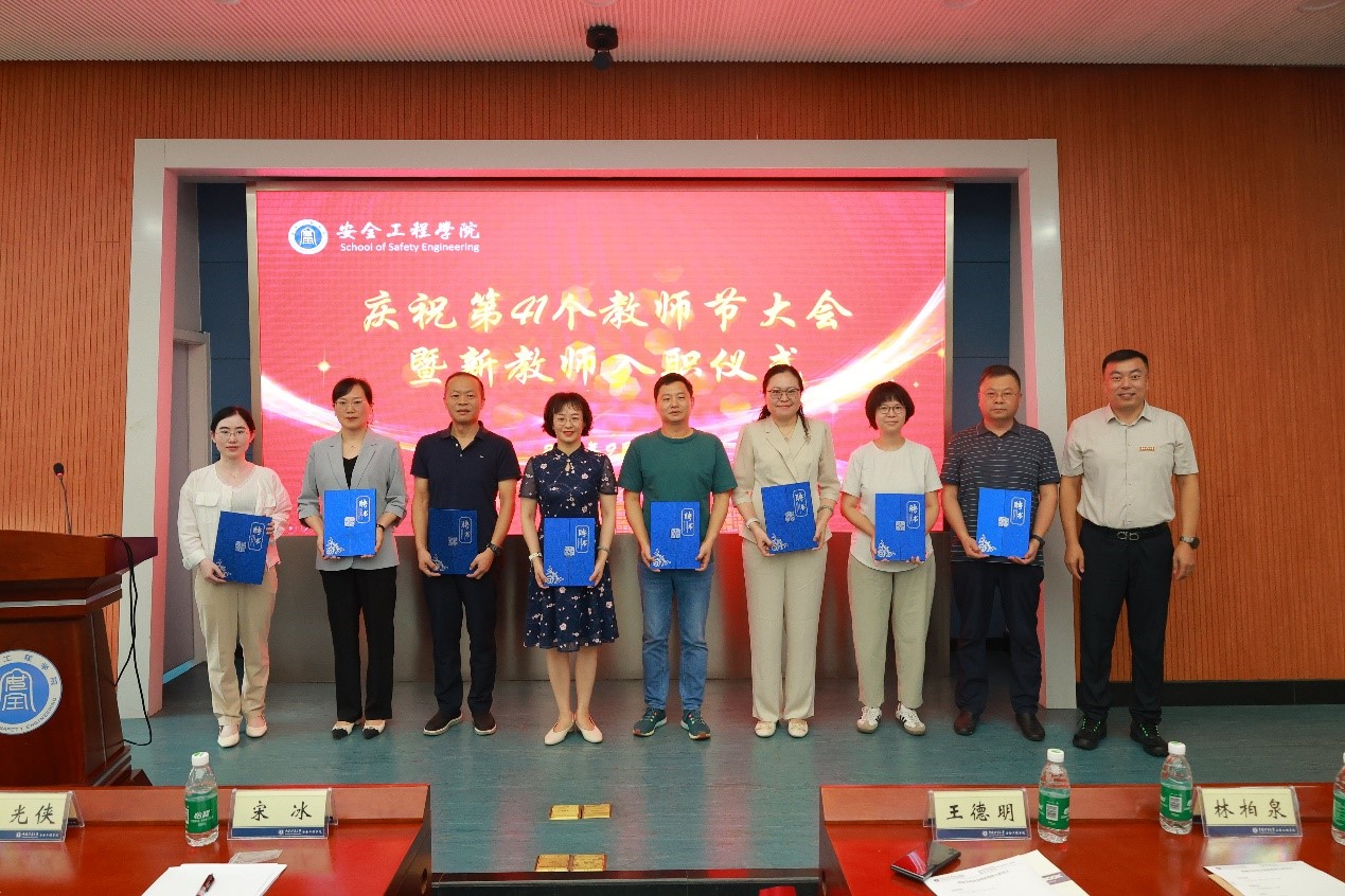 在矿业科学中心A200会议室召开庆祝第41个教师节大会暨新教师入职仪式。院党委书记宋冰,师德楷模教师王德明、林柏泉、程远平、王恩元,副院长郭梅香、戚绪尧,徐州市第一人民医院副院长陈光侠、科教处处长席纪江,天美传媒