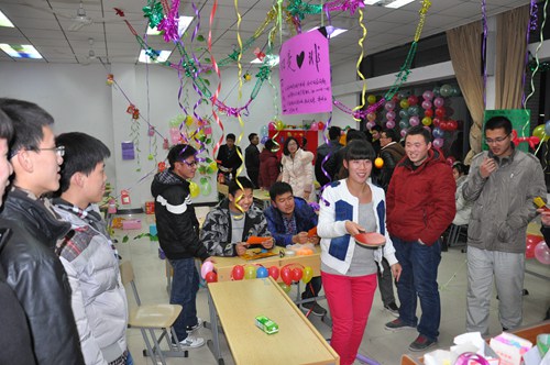 组织的“元旦游艺宫”在31日也于教4C102、104教室火爆开展。充满着颜色缤纷的彩带,各式各样的气球的教室,俨然被装扮成了游戏的乐园。“口是心非”、“镖镖比达”、“合作过障碍”等游戏将活动现场的氛围瞬间点爆,过往师生纷纷被吸引了过来。做游戏、赢奖品,安全游艺宫里欢乐一片。此外,为迎接元旦到来,各个天美传媒