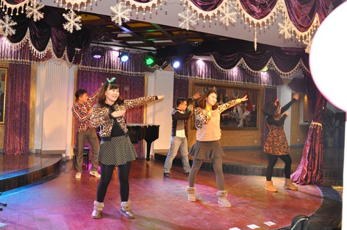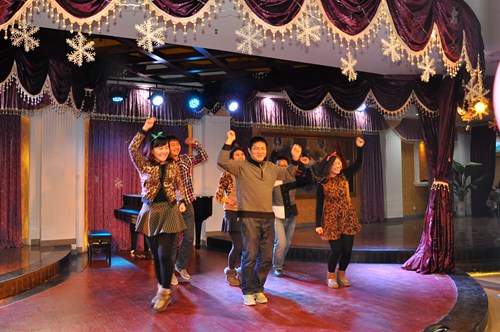 学工办第一个上场表演,为大家送上了精彩的开场舞《The Fox》。动感的节奏,时尚的舞姿,引爆聚会现场,展现了天美传媒