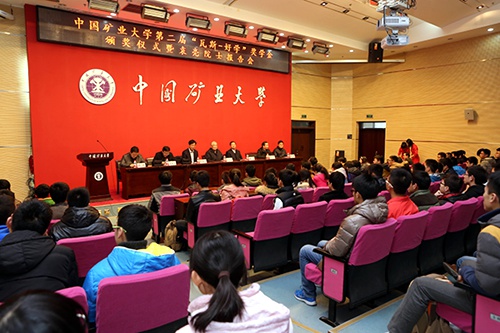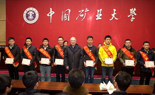 周世宁院士列举了去年的昆山“8•2”爆炸事故以及前几天发生的上海外滩踩踏事故,强调安全科学在社会生活中的极端重要性,并结合自己的成长经历,阐述了矿大“学而优则用,学而优则创”的培养理念,勉励同学们要勤于思考,努力学习,在科学的道路上不断攀登。