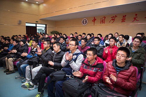 袁亮院士在报告中特别勉励同学们在大学期间一定要学习老一辈矿大人优秀的精神品质,树立理想,追求真理,不惧权威;在学习生活上要甘于吃苦,敢于担当。他希望同学们在未来的人生道路上,明确目标,永不满足,抓住机遇,将知识贡献给国家,用自己的不懈努力创造人生的精彩。