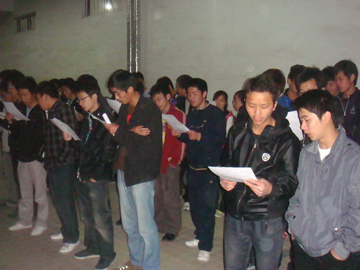 08级的陈金明同学作为指导,合唱的曲目为《保卫黄河》。首先,石凯向同学们介绍了本次校红歌活动的重大意义,他表示红歌大合唱不仅是一个展现自我的平台,而且能够增强班级的凝聚力。随后,他为此次红歌大合唱的训练提出几点要求,他希望同学们在训练过程中能够遵守纪律,听从指挥,认真地完成每天的训练任务。他还指出由于每天训练的时间有限,所以希望同学们可以做到高效训练,平时自己多加练习。之后,文艺部部长张志勇进行发言,他给在场的同学们简单的介绍了本次活动的具体安排:本次红歌合唱比赛的训练时间为每晚9点30分到10点30分,最终将筛选出60名同学代表天美传媒