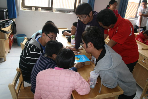 下午15:00,同学们到达了特教中心。首先,爱心班级的同学们和孩子们进行简单的见面会。会上,特教中心周长城主任对爱心班级人员的到来表示热烈的欢迎,并对孩子们做了简单介绍。之后,周主任带领同学们和孩子们去了一个活动室,让大家互动交流。在周主任做了简单开场白后,交流就正式开始。交流中孩子们表现积极,第一个节目是王帅小朋友唱的一首《荷塘月色》歌曲,歌声动听,令人如痴如醉。第二个节目是周庆庆小朋友吹得一曲葫芦丝,同样十分精彩。六个爱心班级同样表演了几个节目,获得了大家的认可和掌声。自由互动中,有的班级陪小朋友聊天、有的向弱视小朋友请教盲文、有的在聆听小朋友背诵诗词等等。孩子们脸上洋溢着快乐的笑容,爱心班级人员脸上也呈现出愉快的表情。最后,参与此次活动人员与小朋友们的合影留念为此次活动划上了圆满的句号。